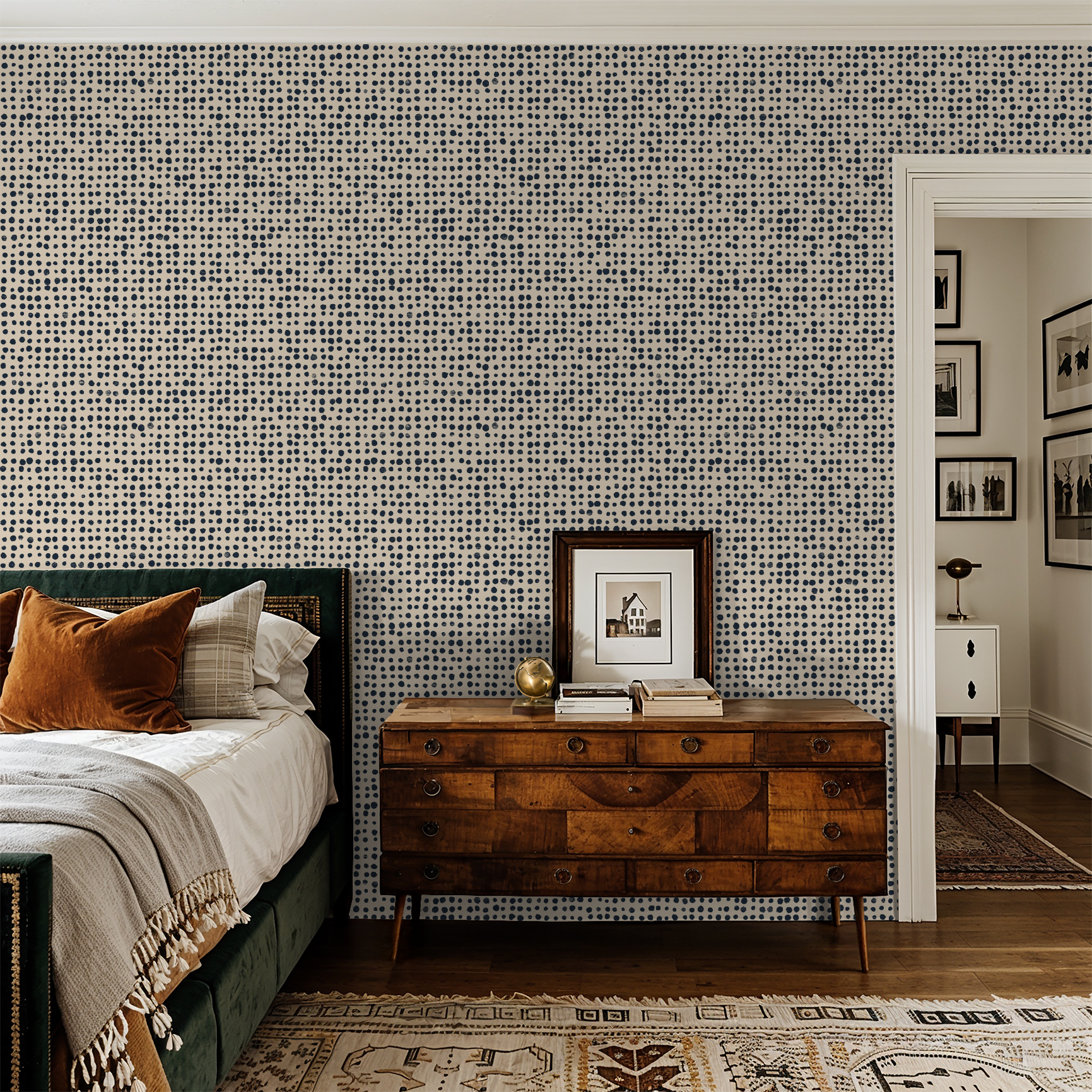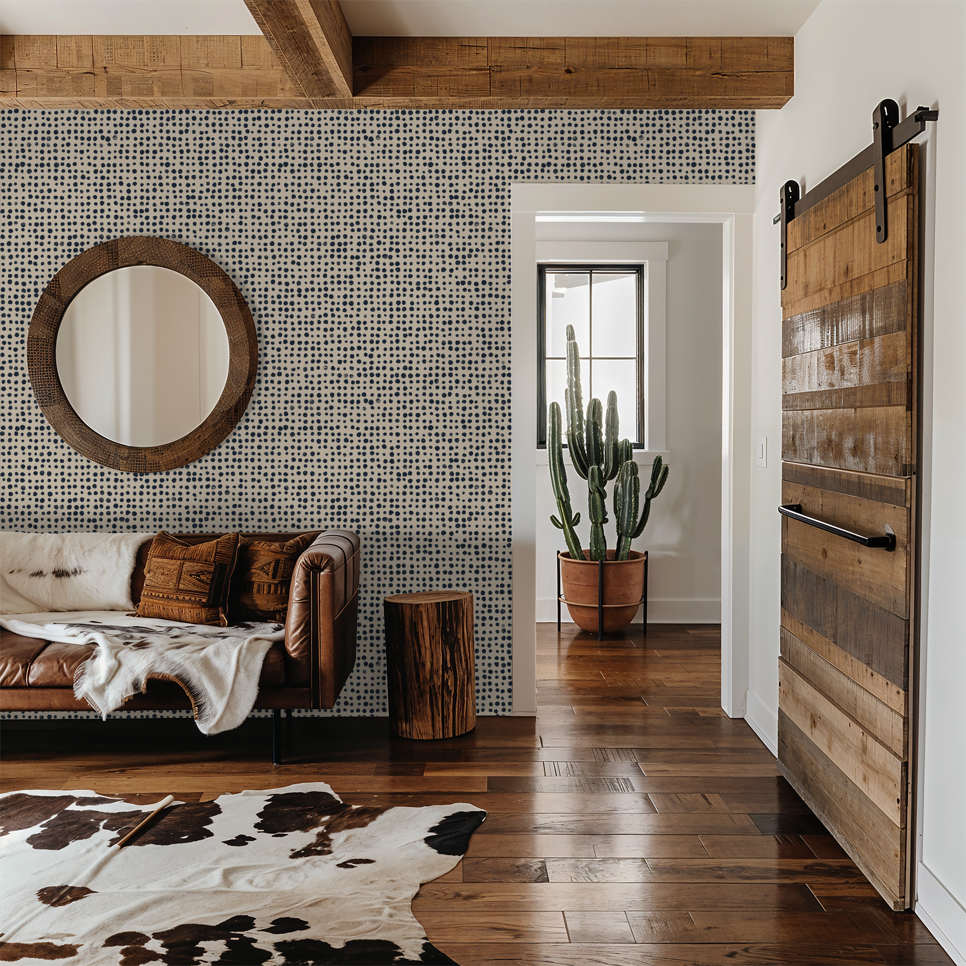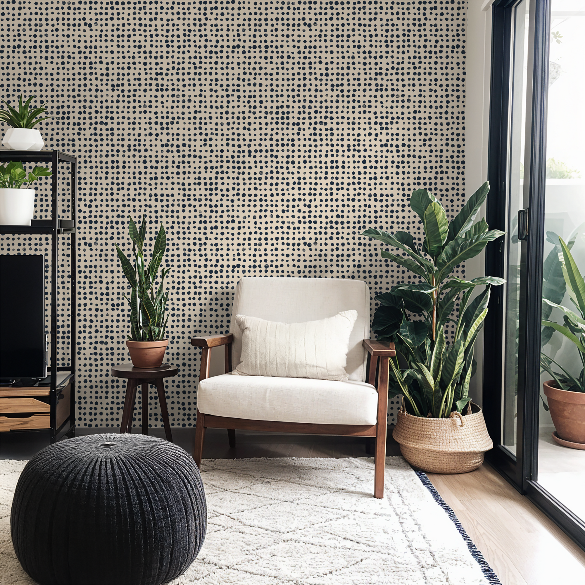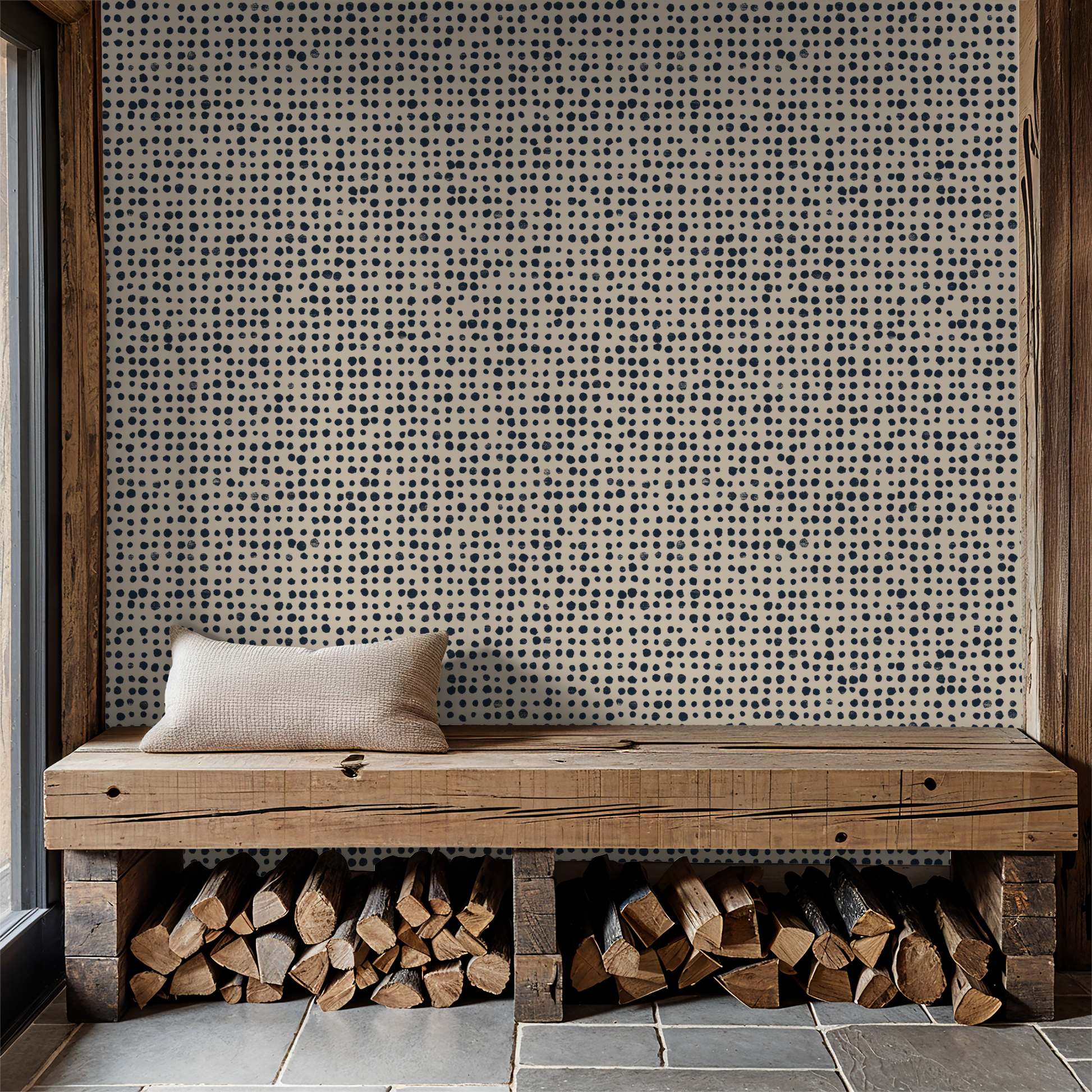 Featuring a dense grid of dots on a warm neutral background, this pattern adds texture and visual interest to any space. Perfect for bedrooms and feature walls, offering depth and rhythm.