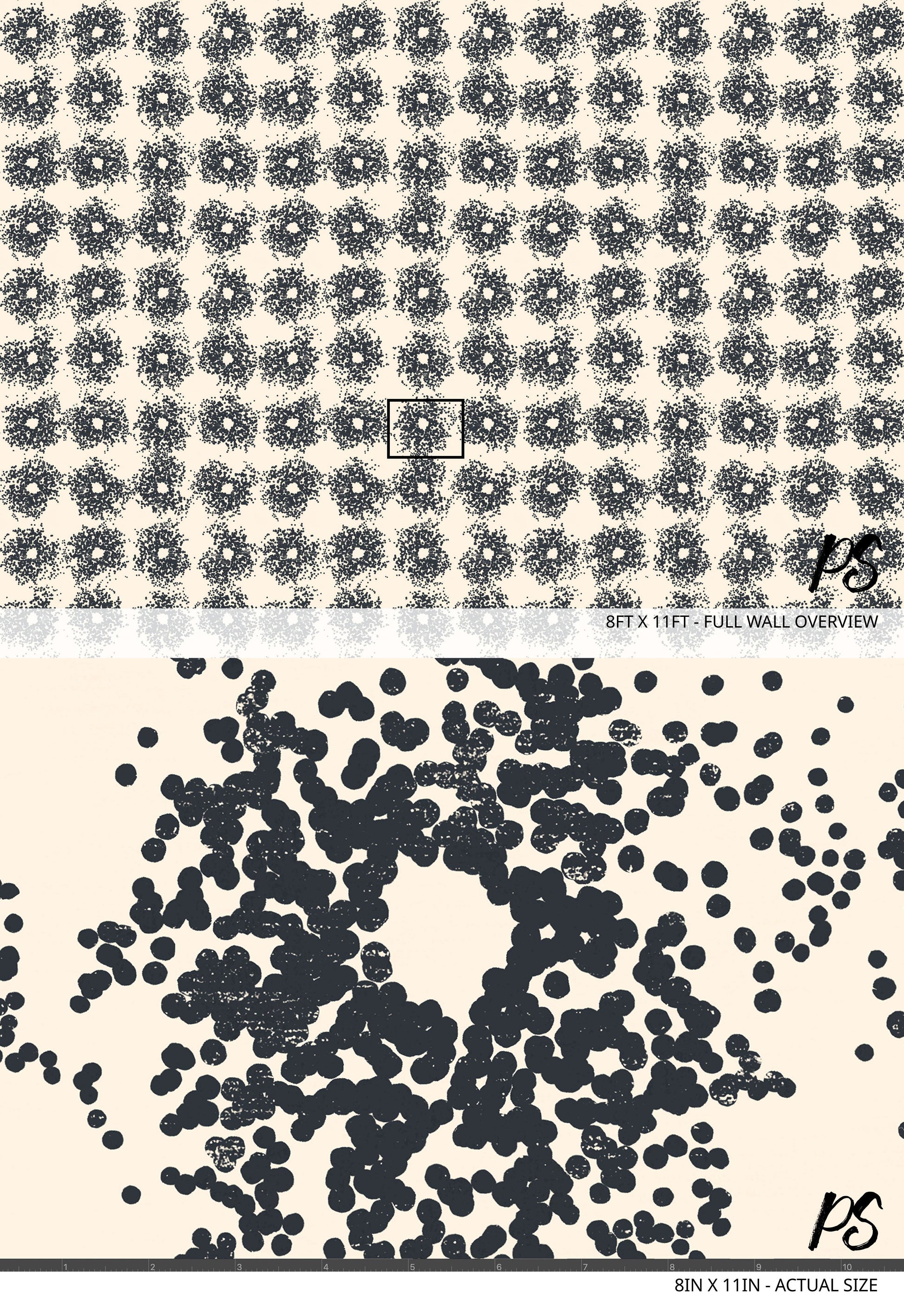This wallpaper features rhythmic bursts of inky dots arranged in an geometric grid. The result is a captivating blend of structure and chaos.