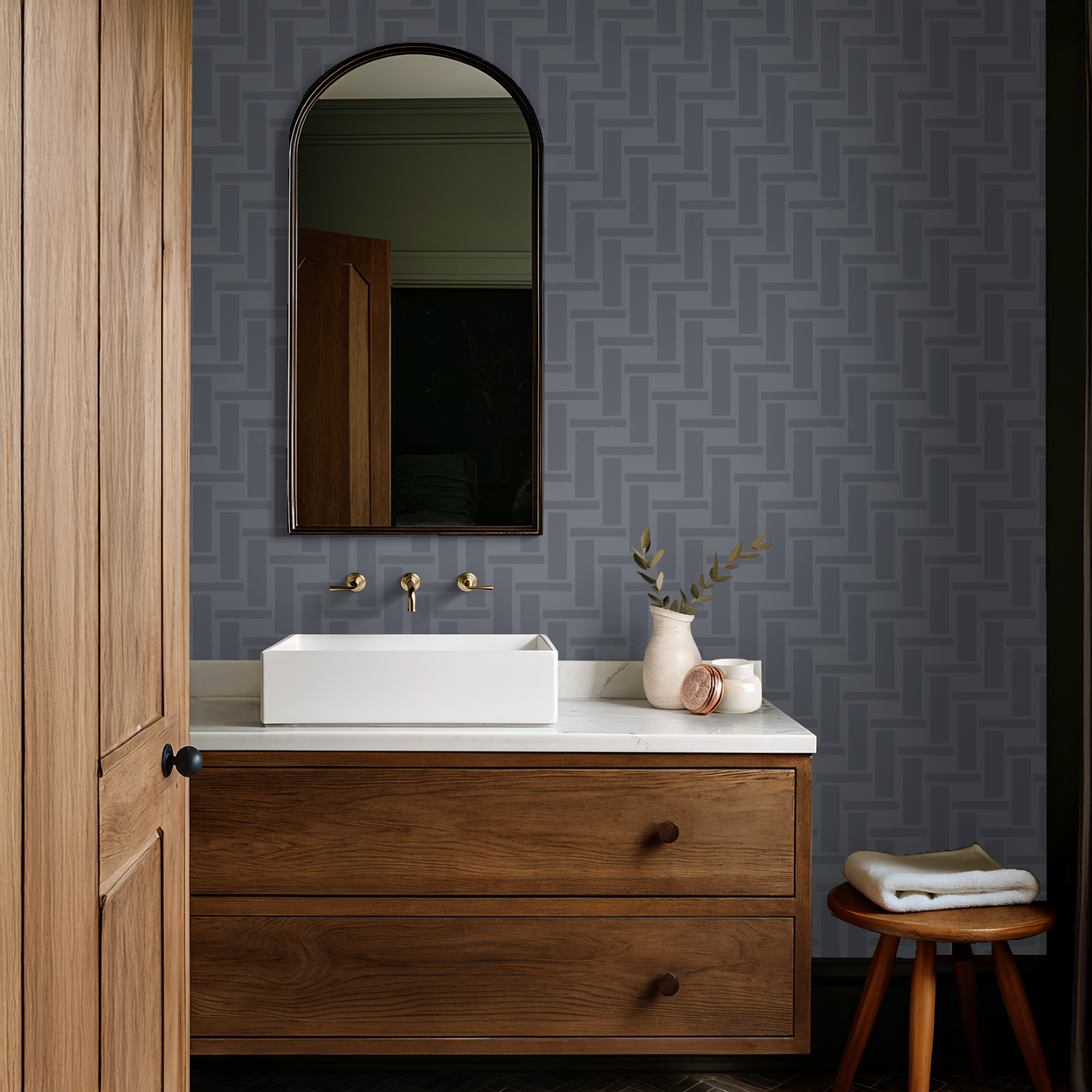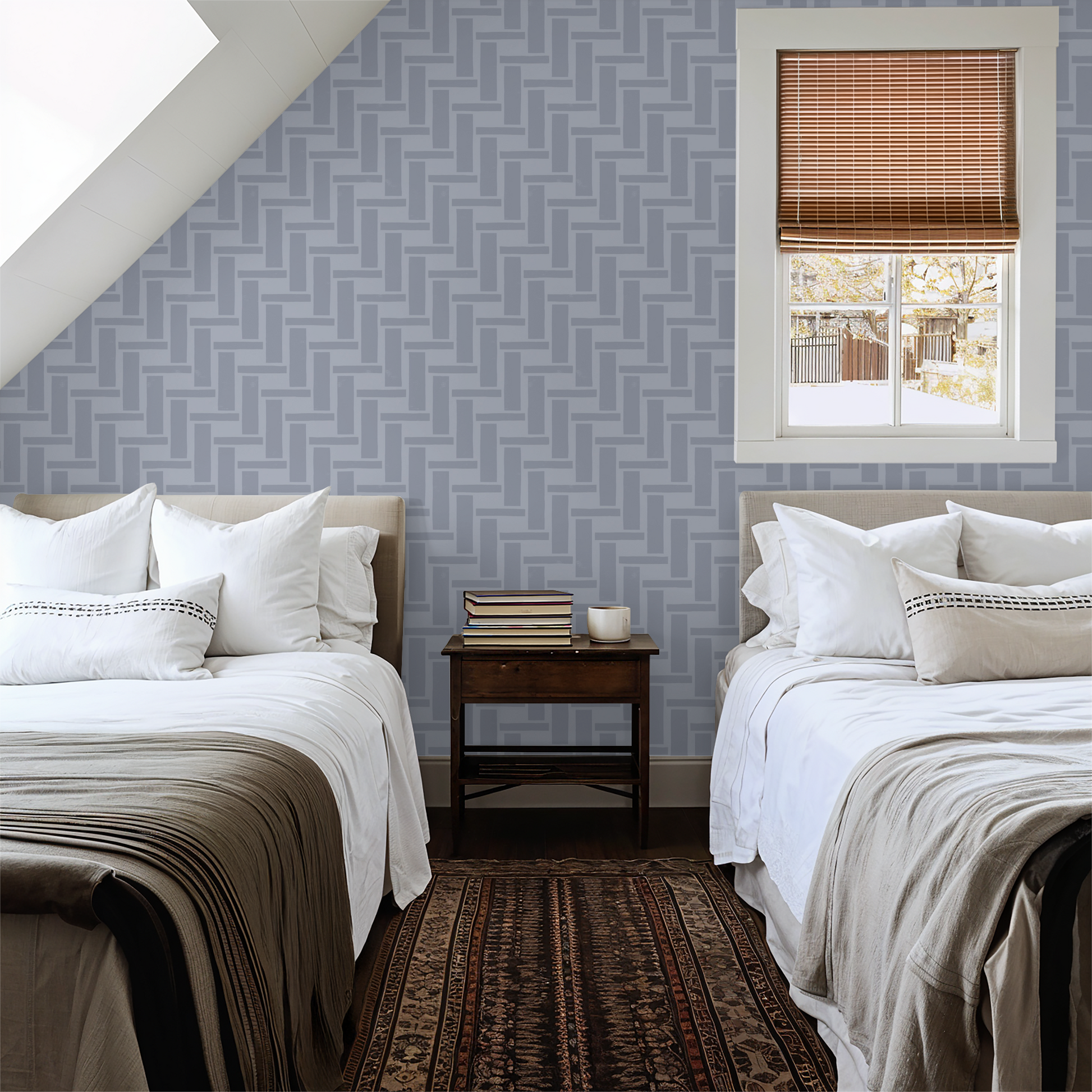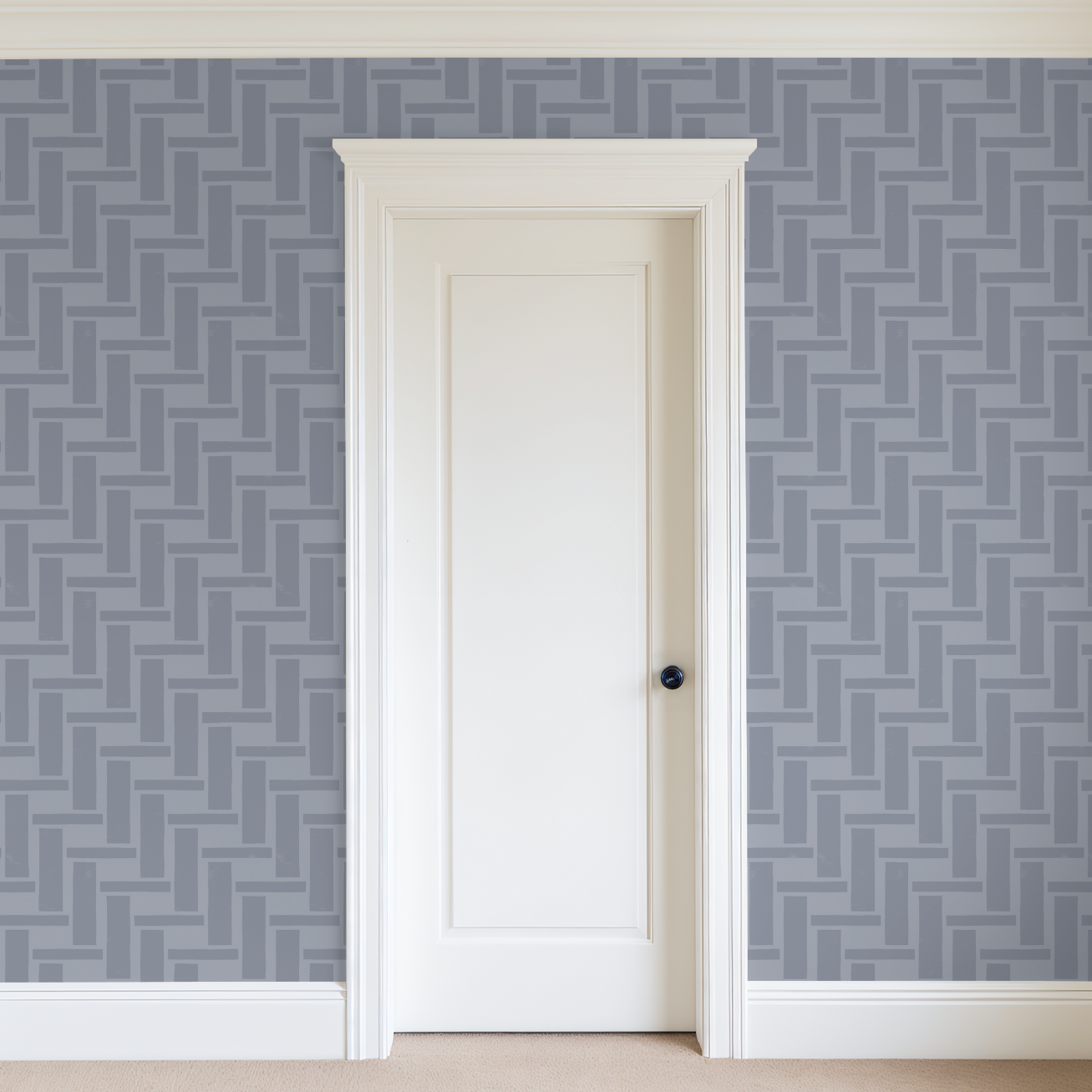 A contemporary geometric design featuring interlaced shapes in soft blue tones. This design brings structure and calm, making it ideal for modern interiors, bedrooms, or workspaces seeking a composed look.